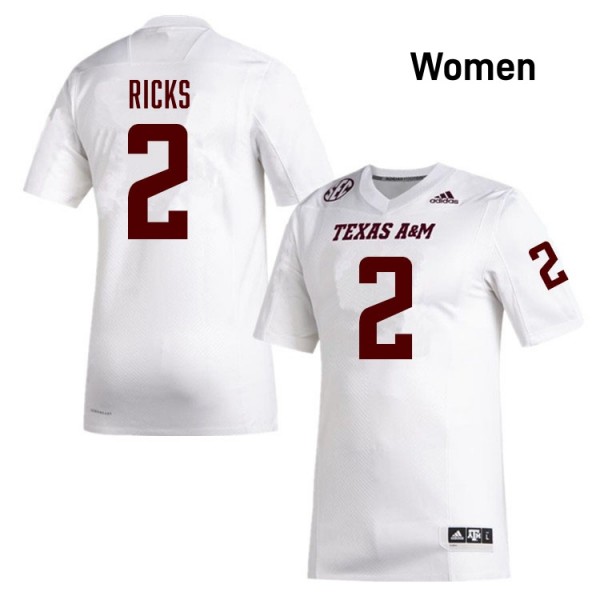 • #2 Dezz Ricks Texas A&M Aggies White Women Jersey Game College Football