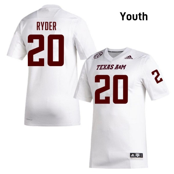 • #20 Johnny Ryder Texas A&M White Youth Jerseys NCAA College Football