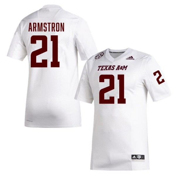 • #21 Kiotti Armstrong Texas A&M Aggies White Men's Jerseys University College Football