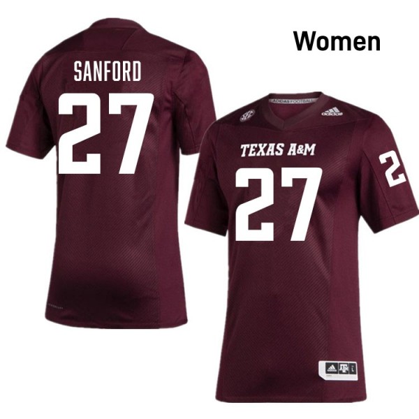 • #27 Daymion Sanford Texas A&M Aggies Maroon Womens Jerseys University College Football