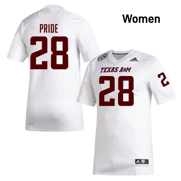 • #28 Jordan Pride Texas A&M University White Women's Jerseys Official College Football