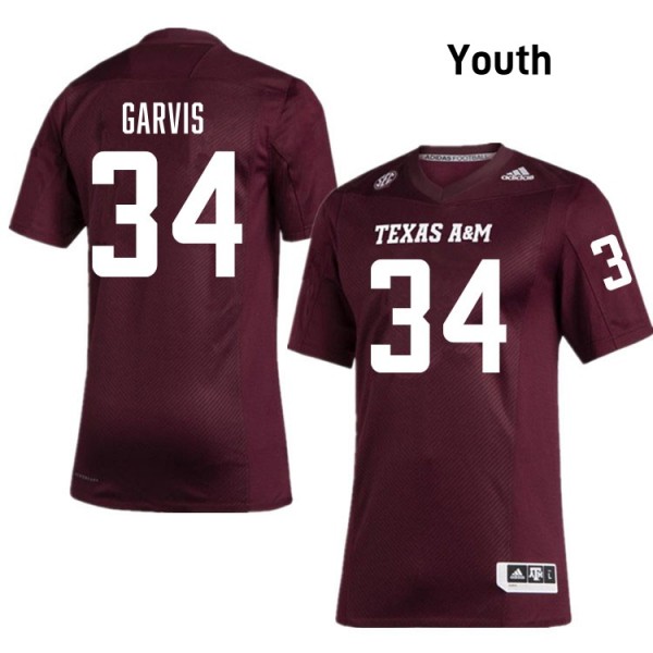 • #34 Kyle Garvis TAMU Maroon Youth Jerseys NCAA College Football