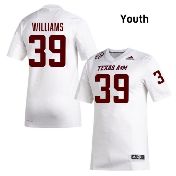 • #39 Whitaker Williams Texas A&M Aggies White Youth Jersey NCAA College Football