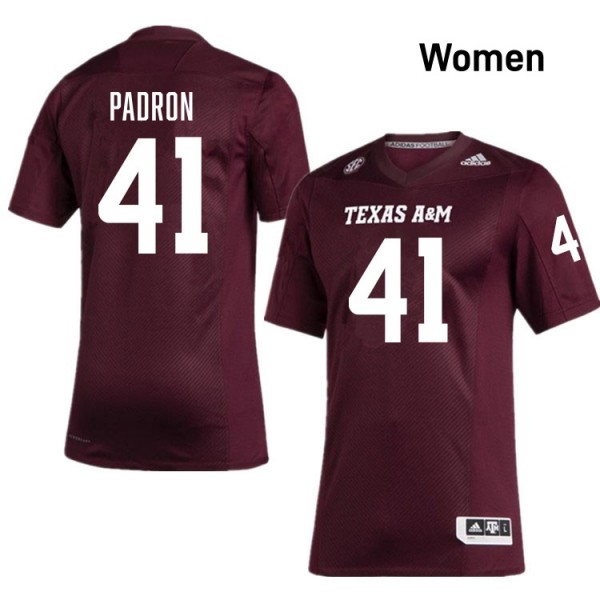 • #41 Liam Padron Texas A&M Aggies Maroon Womens Jersey Official College Football