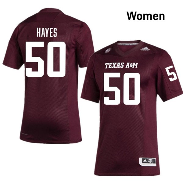 #50 Dayon Hayes Aggies Maroon Women Jerseys Official College Football 157829-200