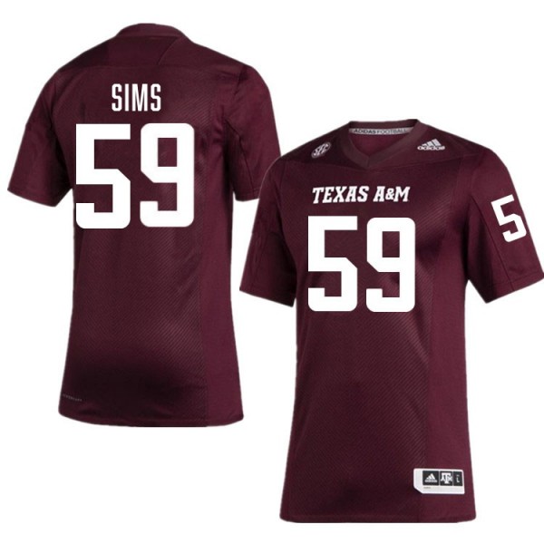 • #59 Chace Sims TAMU Maroon Mens Jersey University College Football