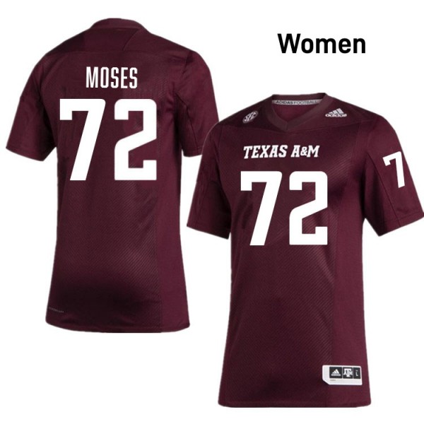 • #72 Joshua Moses Texas A&M University Maroon Women Jerseys 2025 College Football