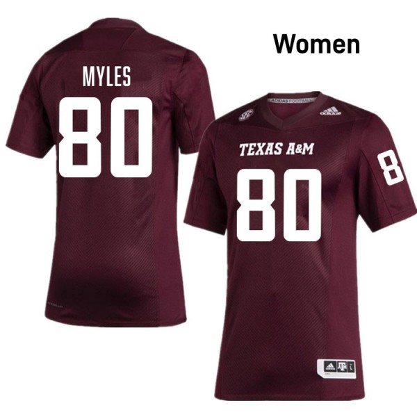 #80 Jerome Myles Texas A&M Aggies Maroon Womens Jersey Player College Football 144216-290