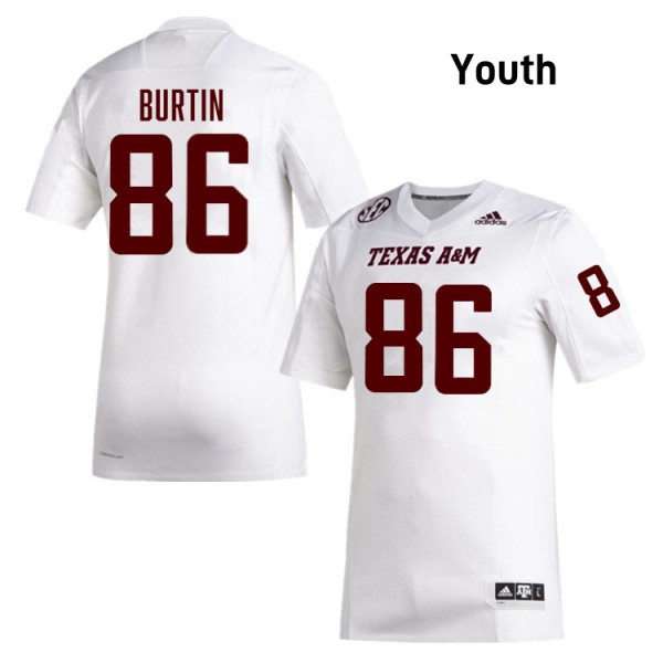 • #86 Ryan Burtin Aggies White Youth Jersey University College Football