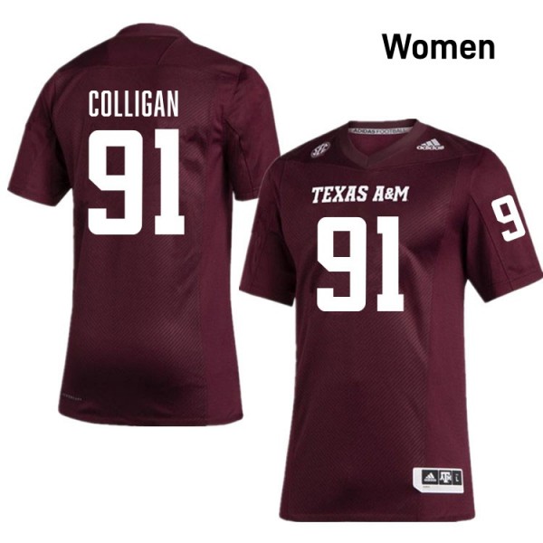 • #91 Tommy Colligan Texas A&M Maroon Women's Jersey Limited College Football