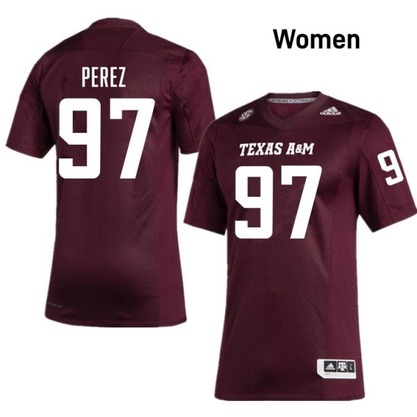#97 Alessandro Perez Aggies Maroon Women's Jerseys Replica College Football 921525-915