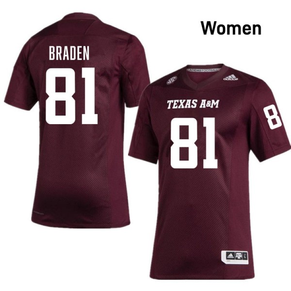 • #81 Luke Braden Texas A&M University Maroon Women's Jersey Stitched College Football